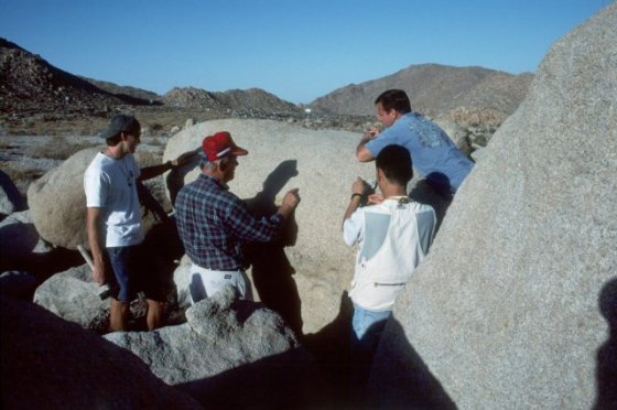 Take Interstate 8 east about 13 miles past the Boulevard exit to the viewpoint (now closed). We went on to the next exit, and turned left under the eastbound lanes of Interstate 8 to a pullout in fresh boulders.