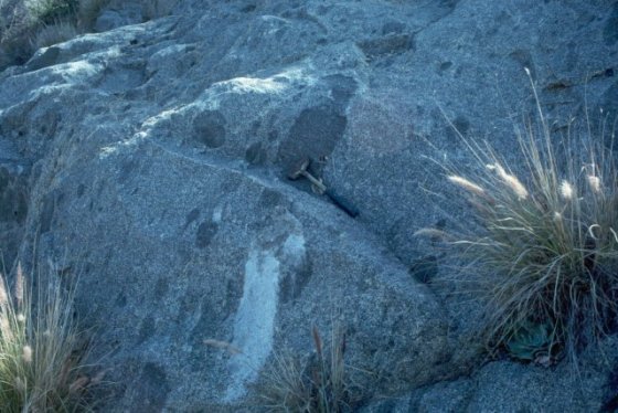 Return to Interstate 8 and proceed cast approximately 18 miles to the Tavern Road exit for Alpine. Proceed east through town approximately 1.7 miles to the first left turn at Victoria Lane. Pass under the freeway and park in the cul de sac opposite the large outcrops.