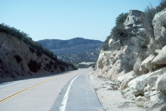 Continue east on Old Highway 80 for about 1.3 miles to moderately fresh rocks exposed in a road cut of weathered material.